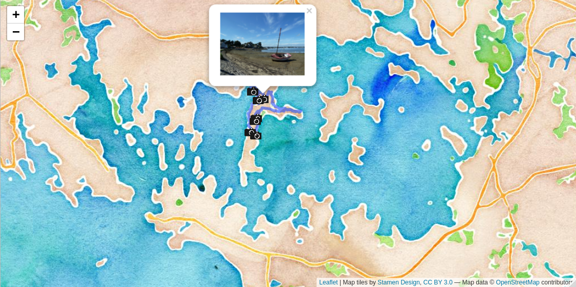 I chose {leaflet} interactive maps to have the possibility to display my pictures in pop-ups and zoom in and out of the map. The R package {leaflet} provides an interface to the Leaflet JavaScript library.